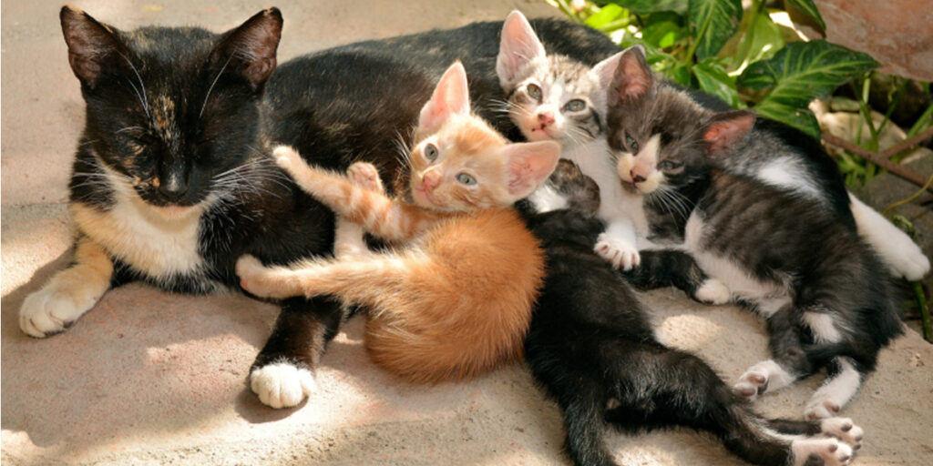 Once your cat’s kittens have been born, they’ll quite literally suck up all of her energy. She’ll need to eat about 2-3 times more food than usual to produce enough milk for her litter. Continue to feed your cat kitten food while she’s nursing.