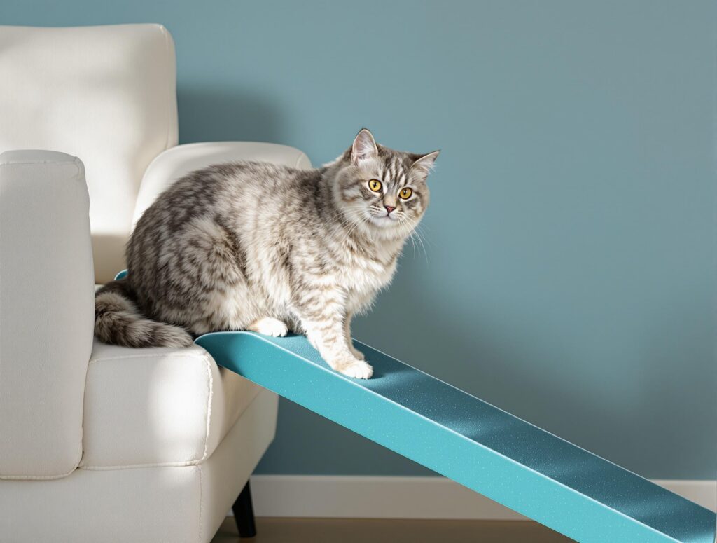 Use ramps or steps to ease your cat’s mobility