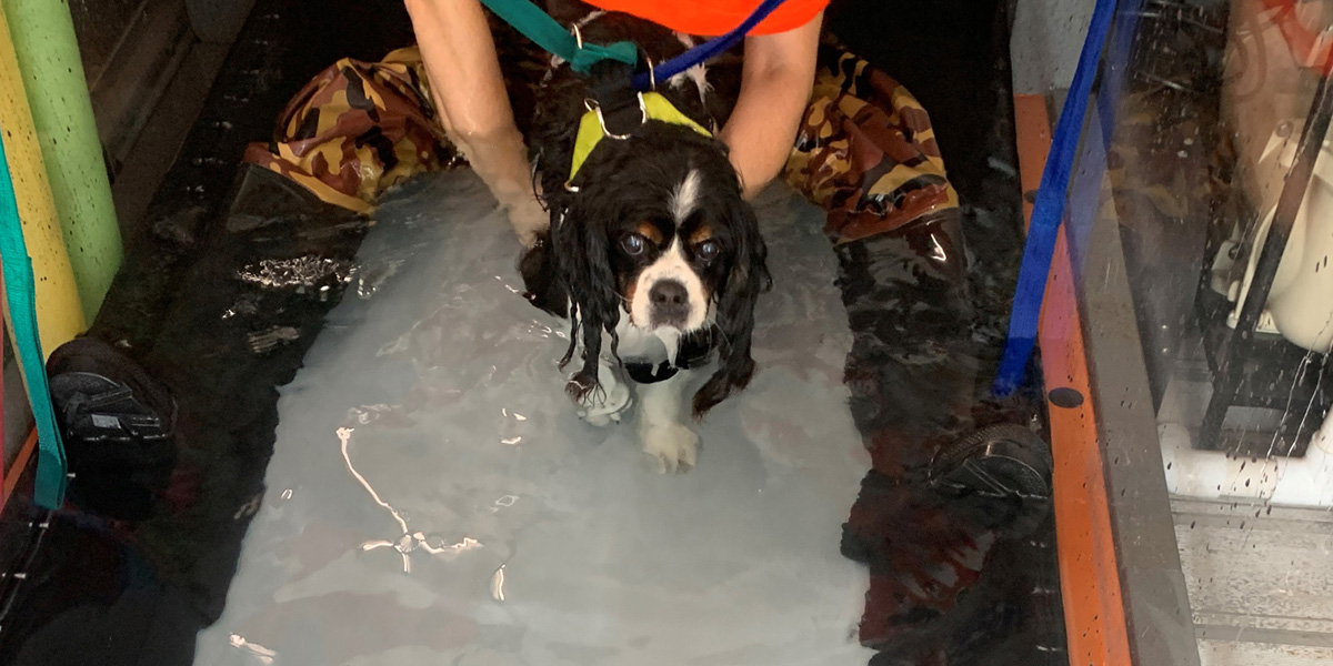 Staying active is one of the best ways to maintain muscle strength and slow down the progression of Degenerative Myelopathy. We were fortunate that our vet clinic offered physical therapy, acupuncture, laser treatment, and hydrotherapy. They also showed me exercises we could do at home in between our bi-weekly rehab visits, as well as massage therapy – Dixie’s shoulders and upper body were becoming tight and sore from working overtime for her lower body.
